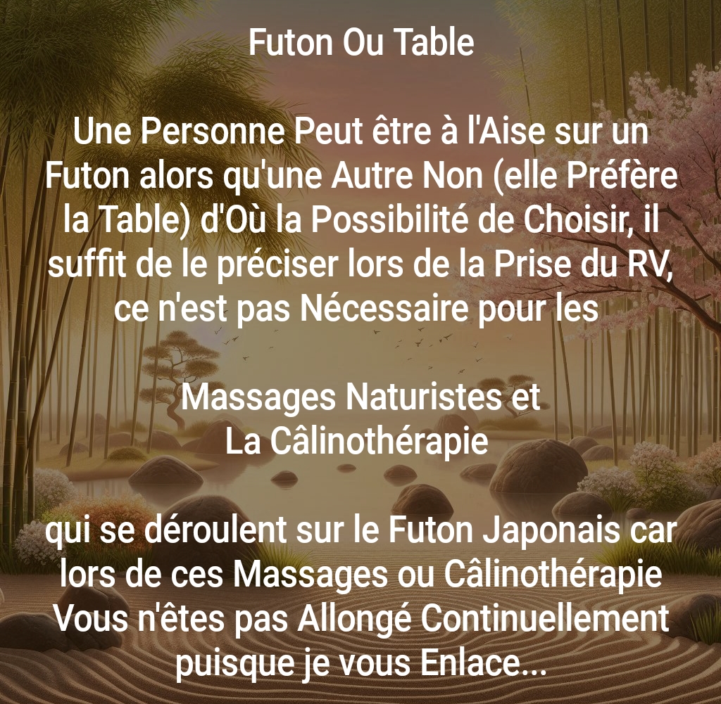 * Tantrique intégral sur table OU Futon Japonais selon votre préférence